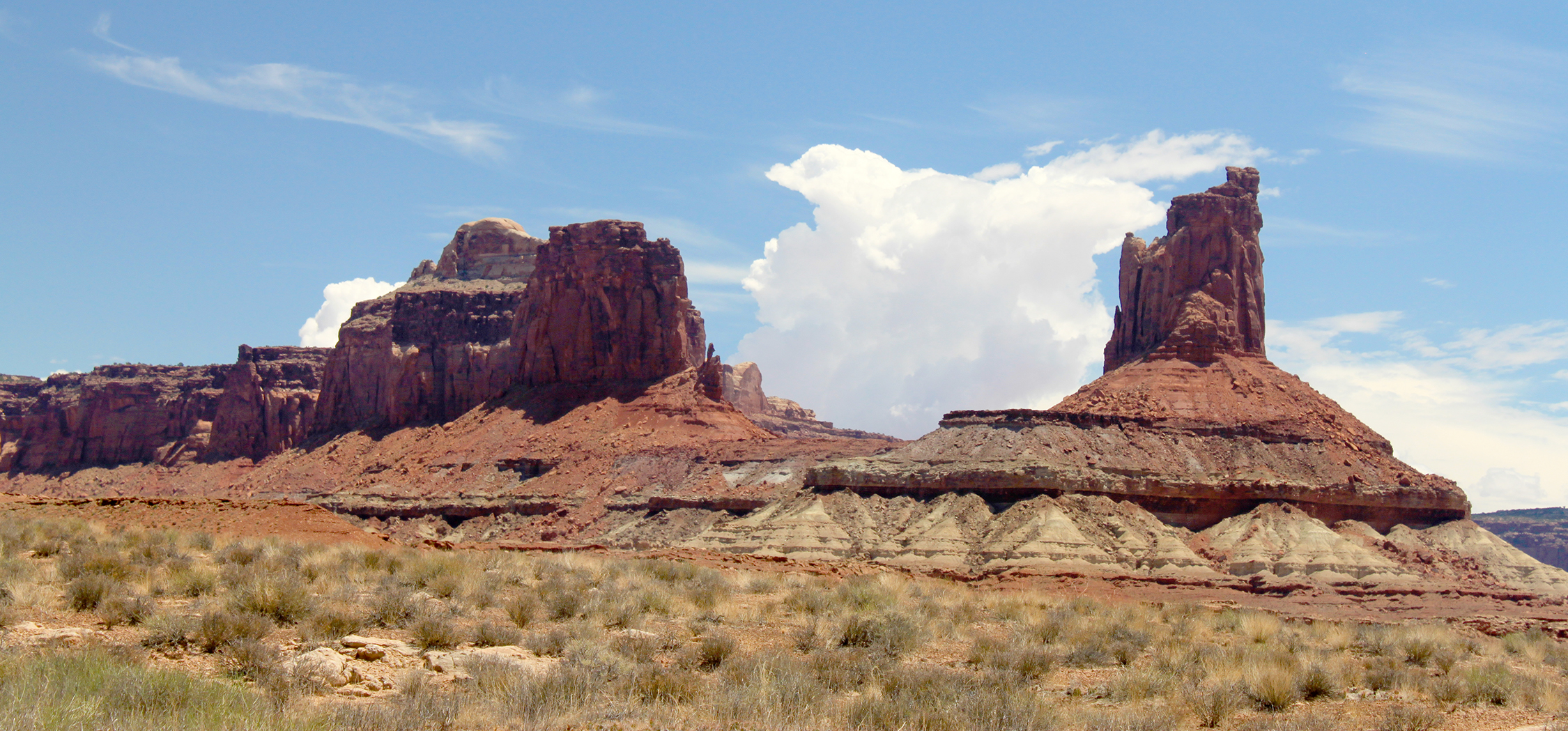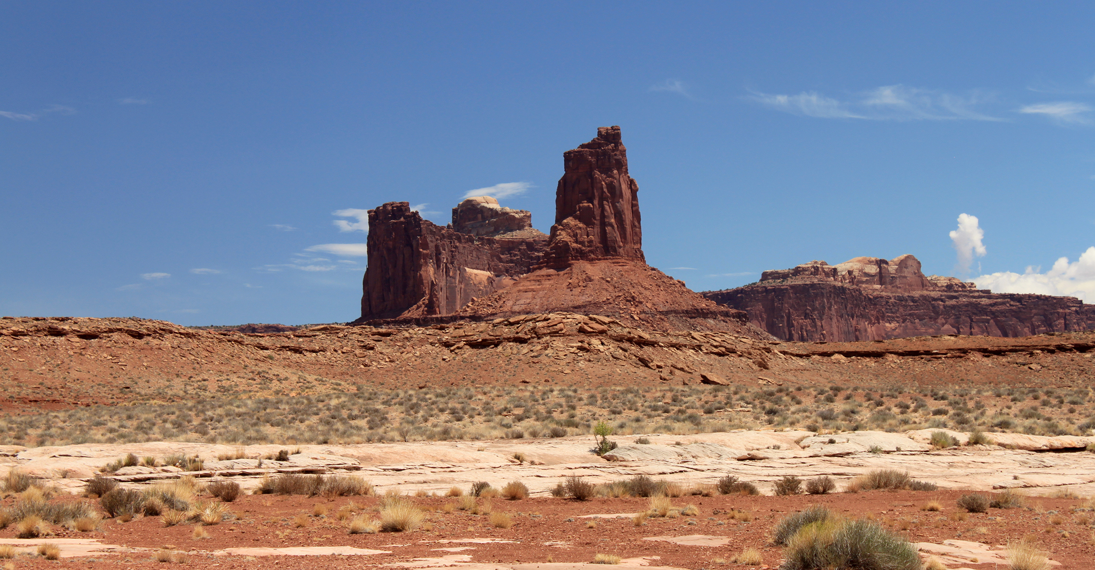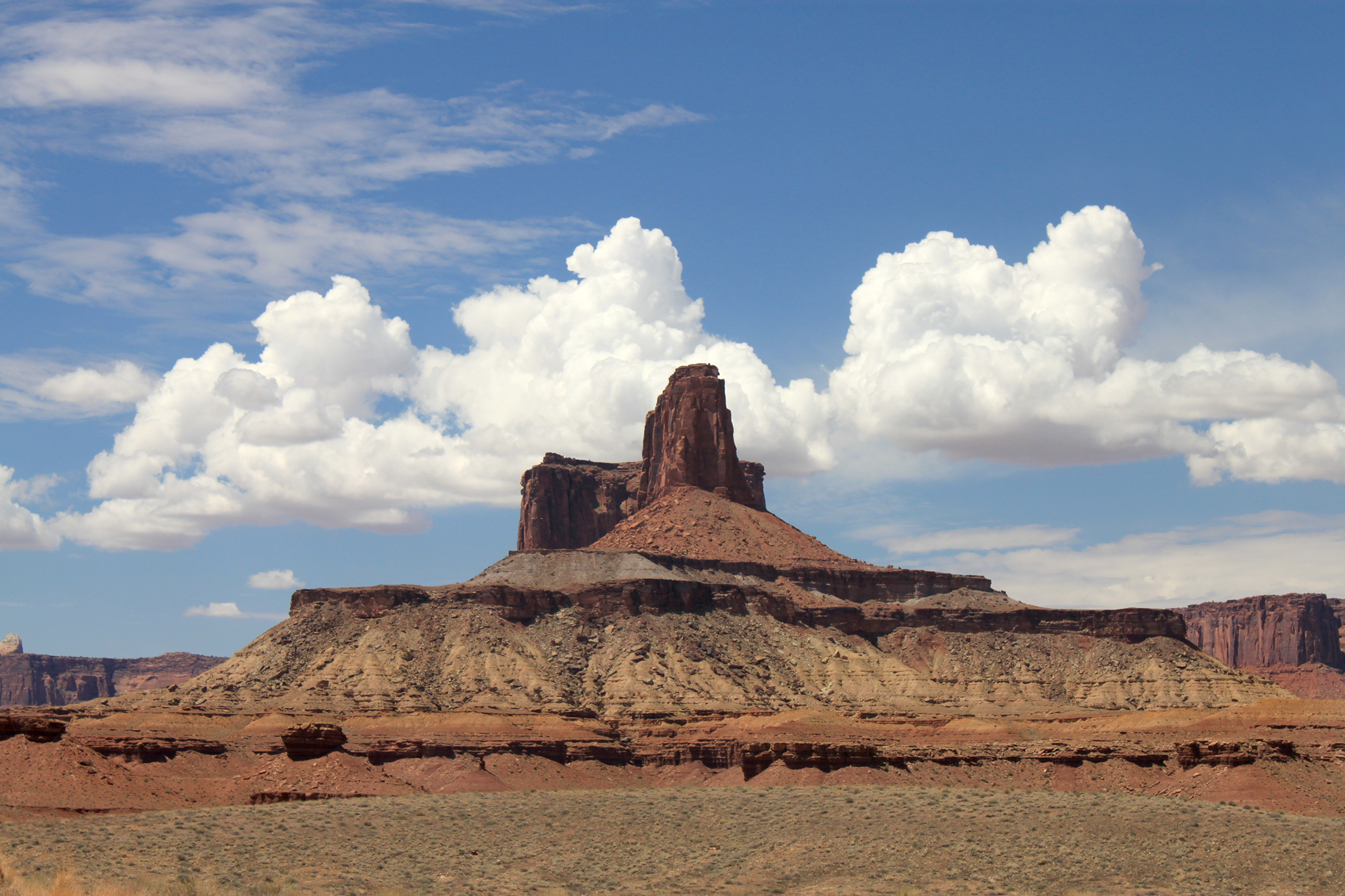 Montior and Merrimac buttes seen from near the entrence of Canyonlands National Monument. There is a trail that