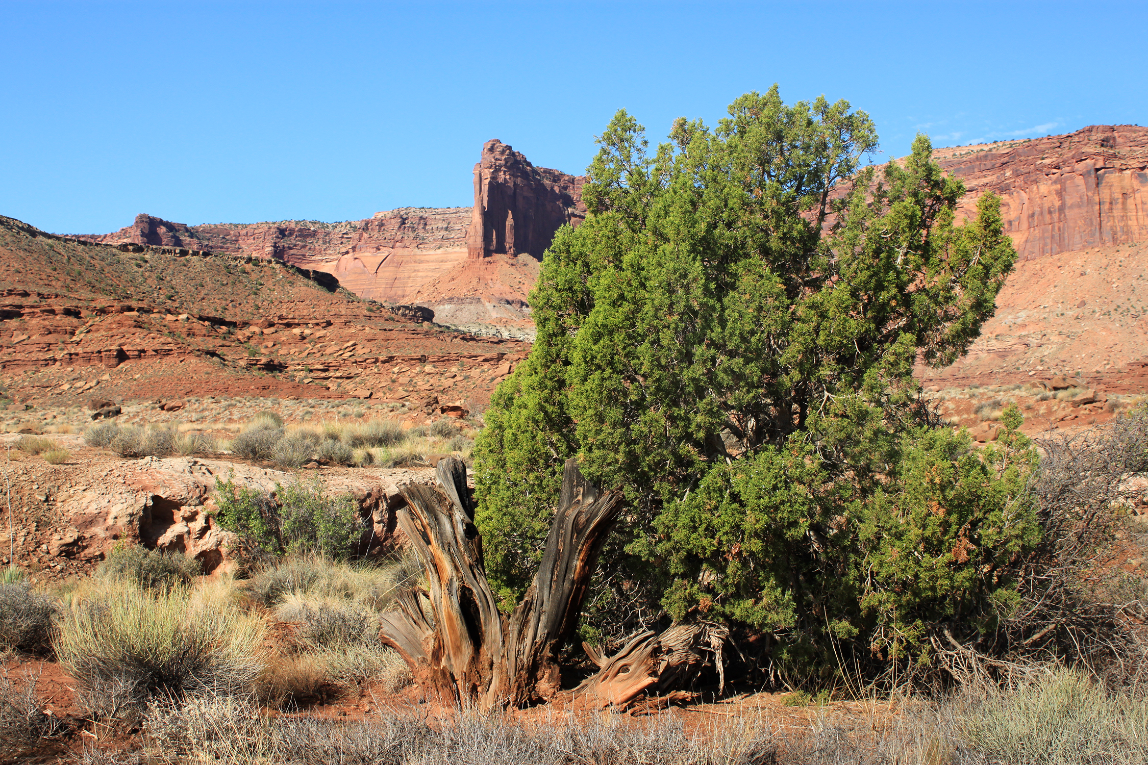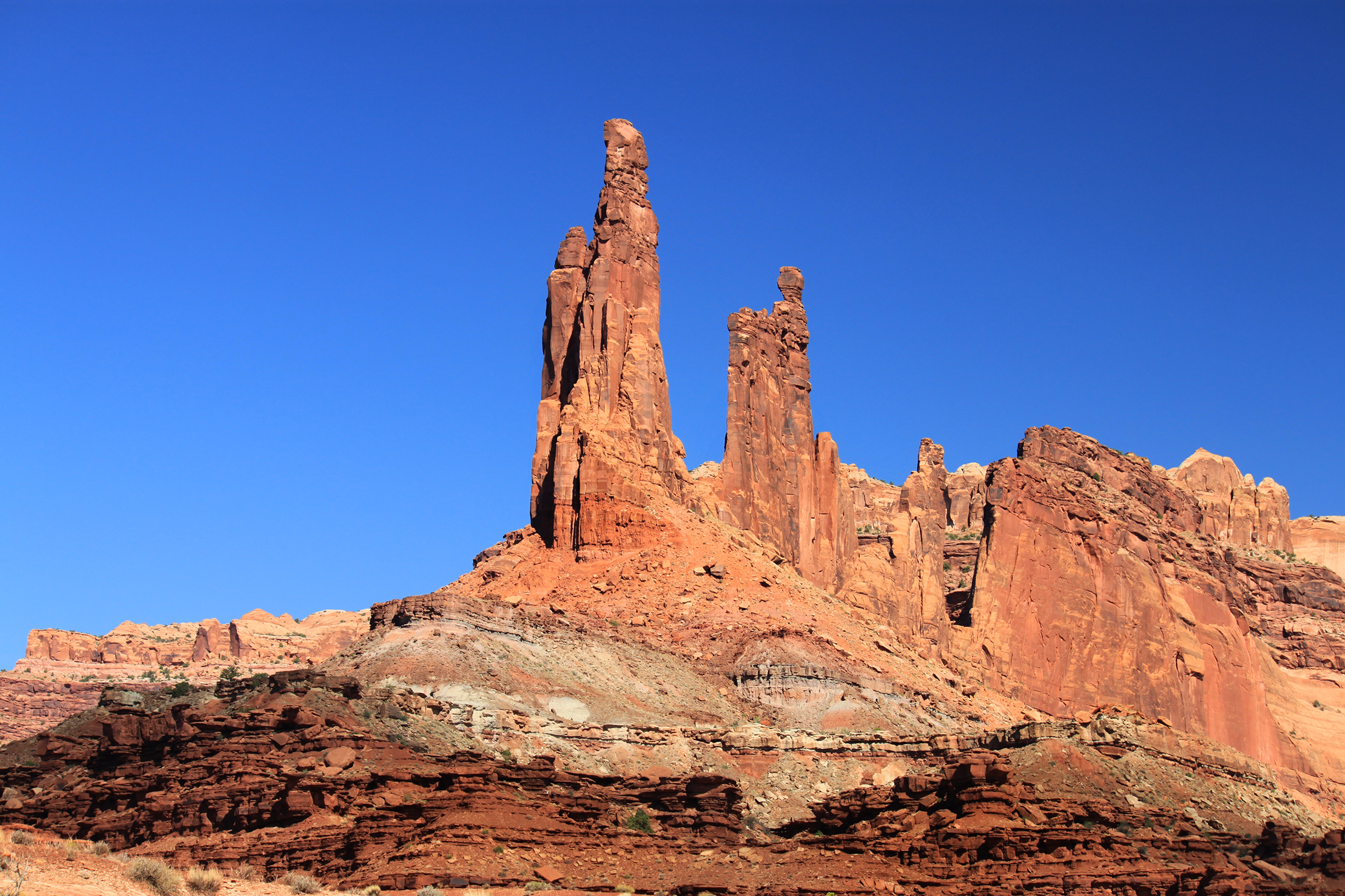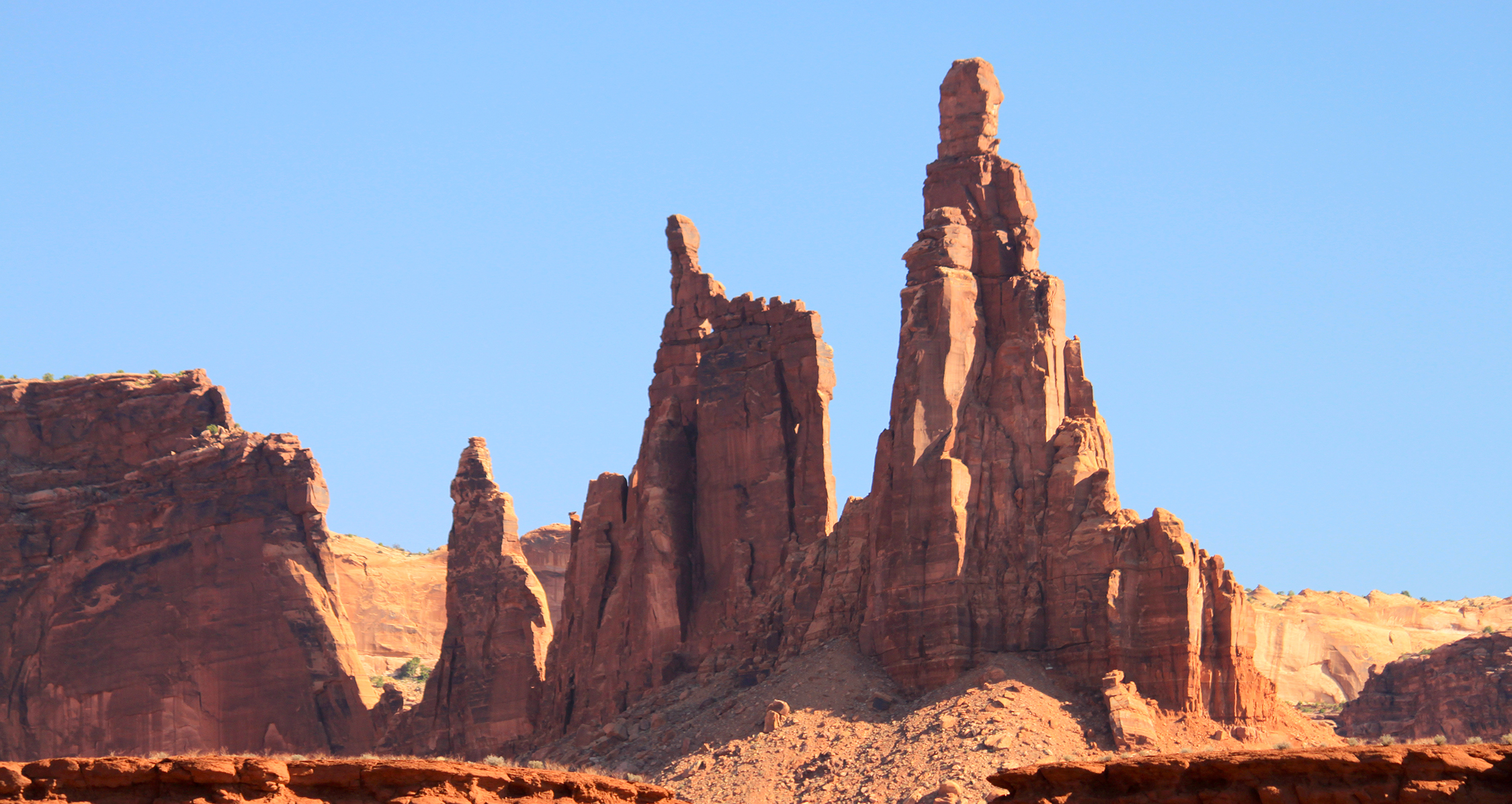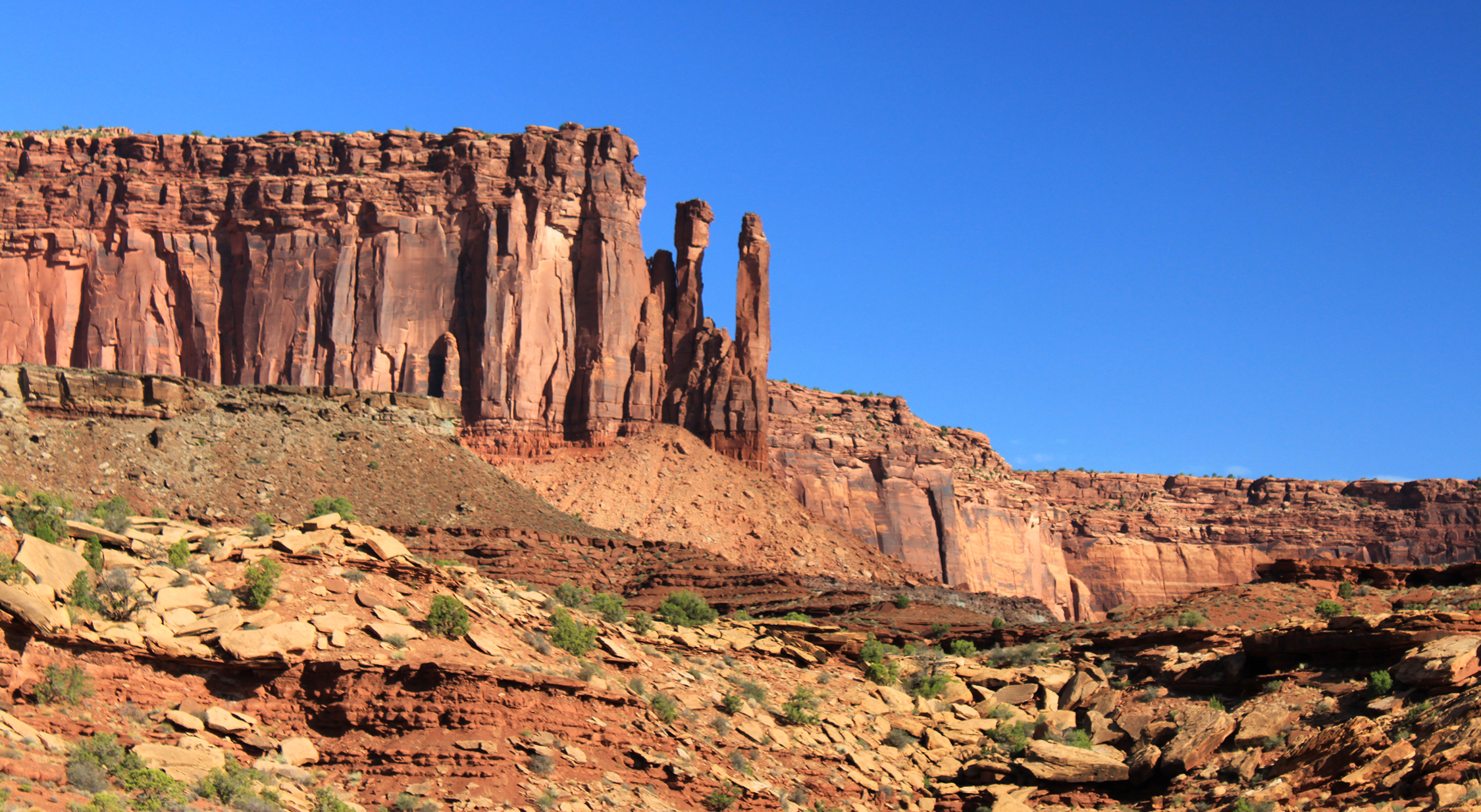 Montior and Merrimac buttes seen from near the entrence of Canyonlands National Monument. There is a trail that