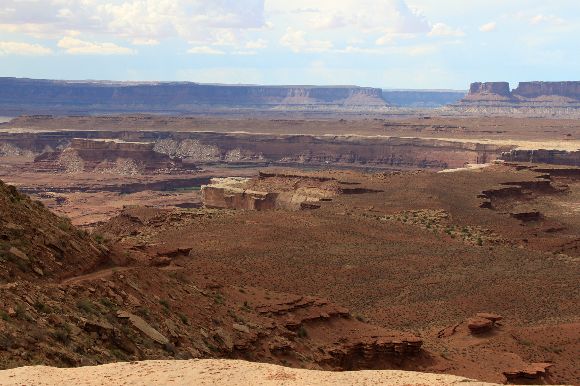 The trail is wide and mostly level for about the first quarter of the way from Potash before it narrows down going