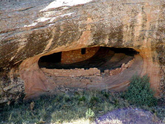 An Anasazi cliff dwelling almost at the bottom of a cliff. I