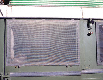 Problem areas with the optional screens are that air flowing past them at highway speeds tends to make noise and their weight can sometimes cause the rivnuts to come loose. This is especially true for Dormobiles that drive through high brush that strikes the flat edges of the frames.